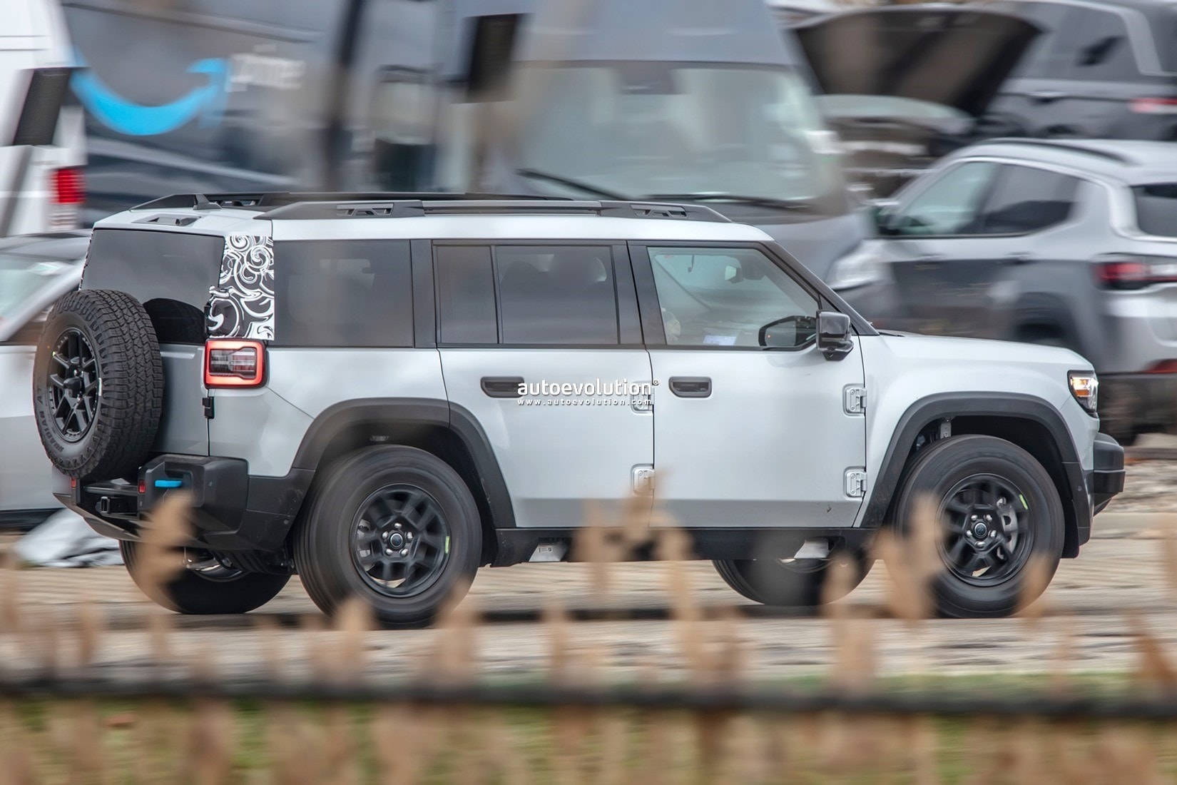The Stellantis-controlled Jeep brand has recently started testing lightly camouflaged Recon electric off-roaders in Michigan. Our spy photographers have captured three of them, with all rocking Nexen Roadian ATX tires on 17-inch wheels of the double-spoke variety.