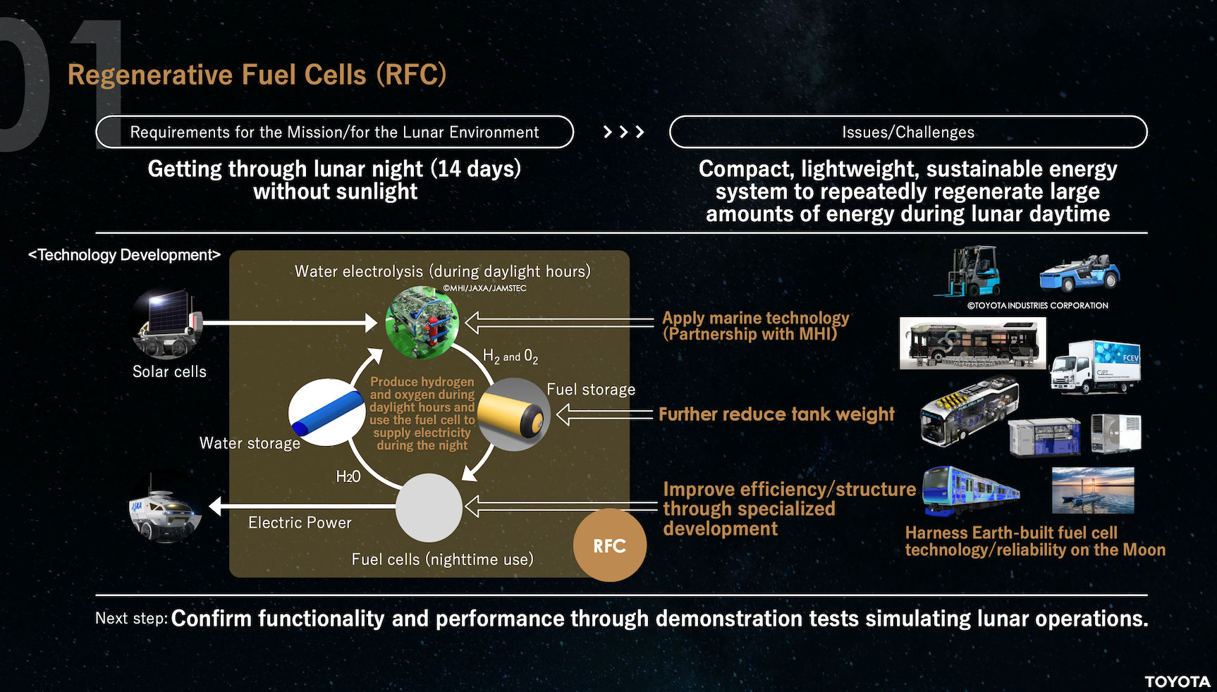 To travel around the surface the rover will use a hydrogen powertrain derived from the one deployed on the Toyota Mirai, and that should give it a range of up to 6,200 miles (10,000 km). Both NASA and JAXA astronauts will be able to use the rover.