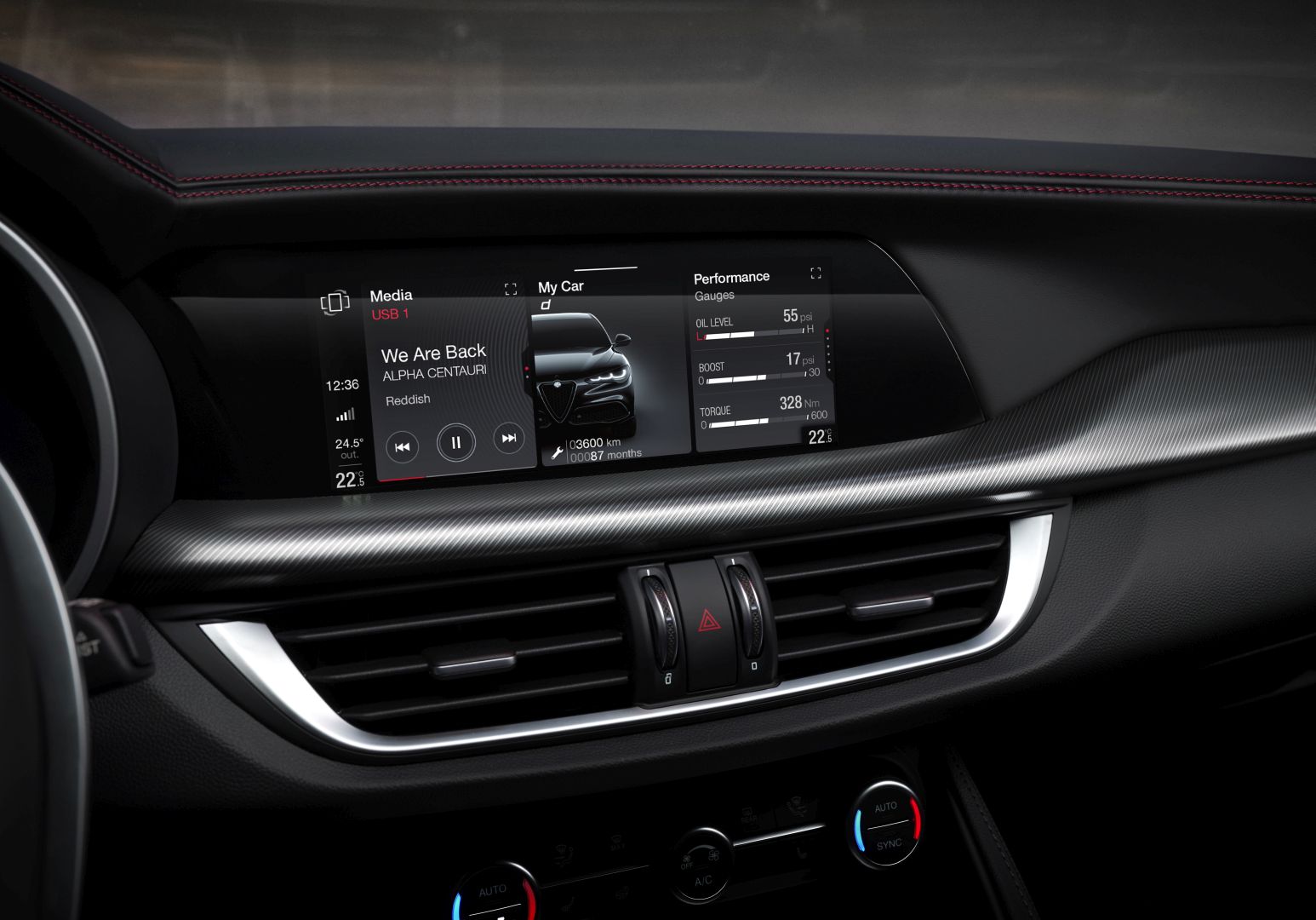 Inside, everything resembled a Giulia, from the steering wheel with a push-button to start the engine to the gear selector for the automatic transmission. Yet, the dashboard was different but, like the Giulia, featured a 12.3" TFT screen for the instrument panel with three different layouts: Evolved, Relax, and Heritage. The high-bolstered front seats were unusual for a crossover, but they fitted the Stelvio very well.