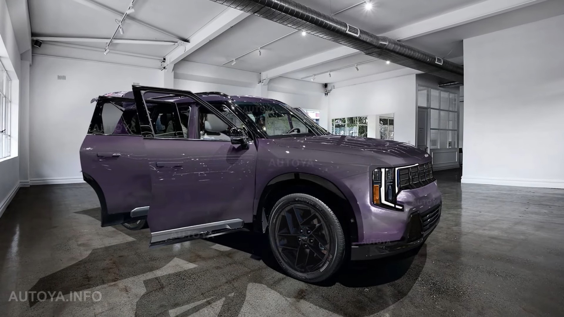 The host of the channel then speculates that the all-new second-generation 2026 Kia Telluride could arrive with three engine options – a base 2.5-liter turbocharged inline-four, the current 3.8-liter V6 mill, as well as a fresh plug-in hybrid option to take it even closer to its EV9 all-electric counterpart. As for the channel's resident pixel master, the latter was busy showcasing the potential de-camouflaged design of the new iteration in as many ritzy hues as possible.