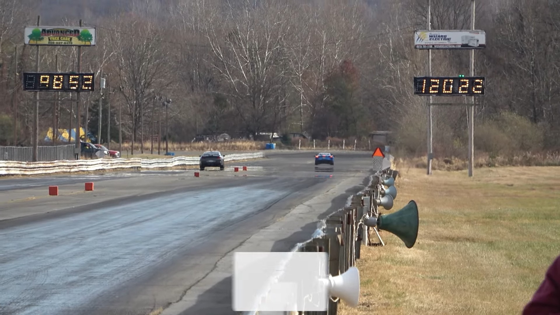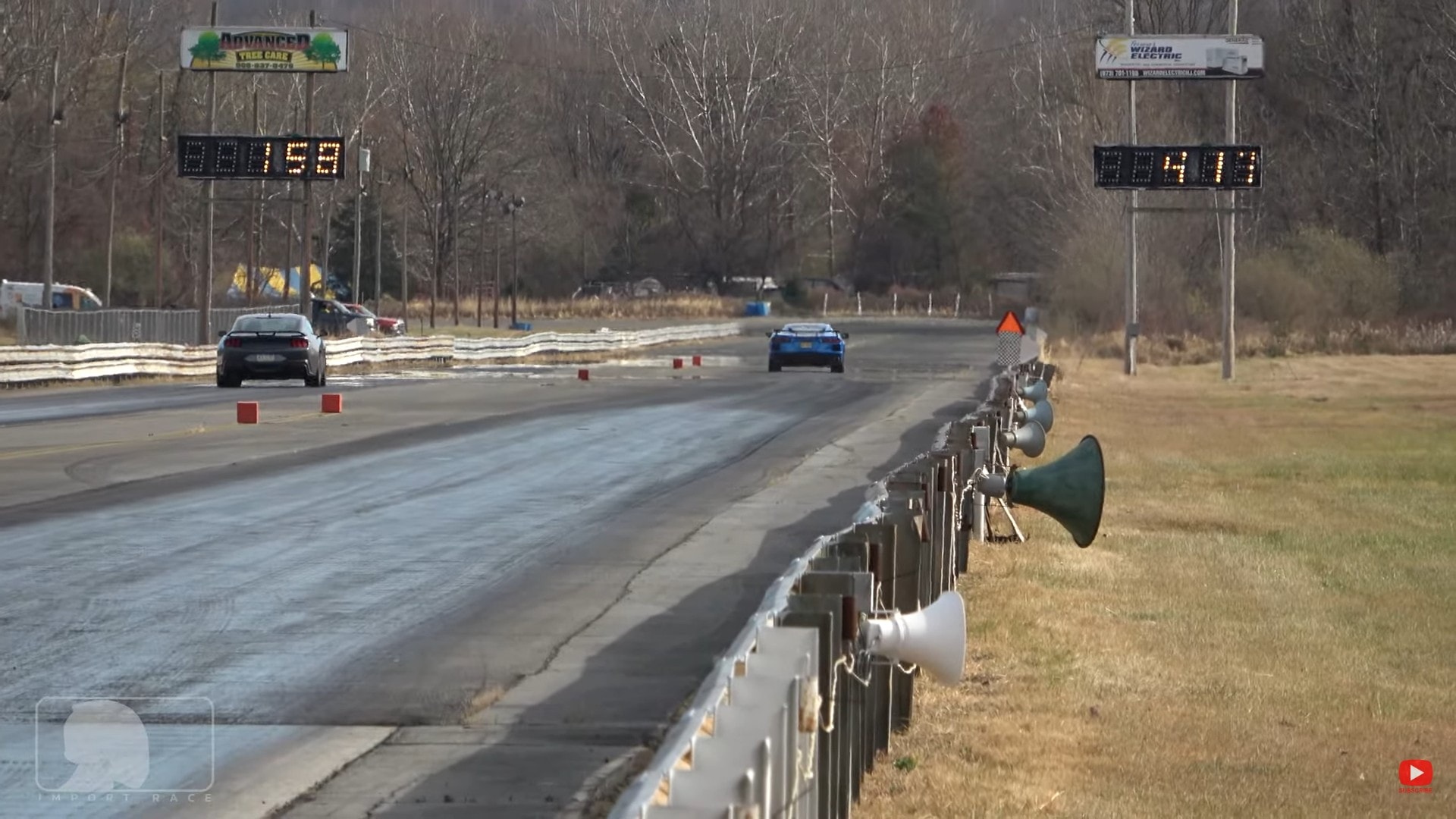Now that the Dark Horse and Stingray had found each other, they proceeded to race, and the Chevy driver edged its opponent fast with a better start despite the slower reaction time. Both sounded glorious while thundering down the raceway and, in the end, one of them sure made a fool out of the other – the Dark Horse looked like it was strolling while a jogger swooshed by, hence the absolute destruction on the electronic scoreboard: 11.44s versus 13.99s!