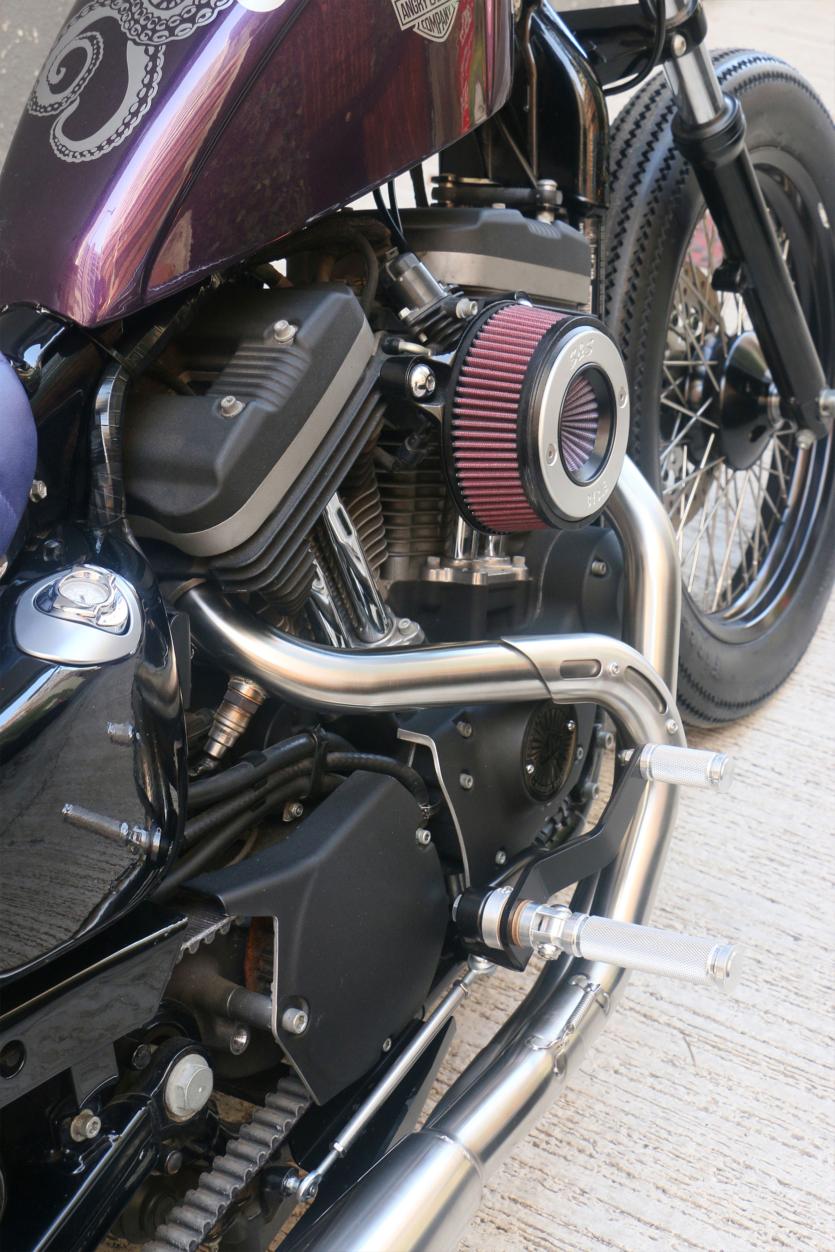 He wanted the fuel tank to be covered in some snazzy octopus graphics, but just about everything else was left at Angry Lane’s discretion. With the Harley delivered to their facility, the Barras brothers had the pleasant surprise of finding its V-twin engine fitted with a 1,200cc big bore kit. That was cool and all, but the motor still needed some serious tuning in order to make the most of this upgrade.