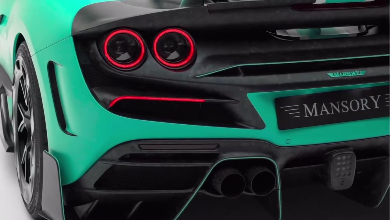 Like the tuner's previous takes on the Ferrari F8, the F8XX Spider Tempesta Turchese also benefits from a power boost. The 3.9-liter V8 turbocharged engine has been massaged to deliver 708 pound-feet (960 Nm) of torque and 868 horsepower (860 ps/647 kW). Mansory claims the 0 to 62 mph (100 kph) acceleration takes just 2.6 seconds and the top speed is 220 miles per hour (354 kph).