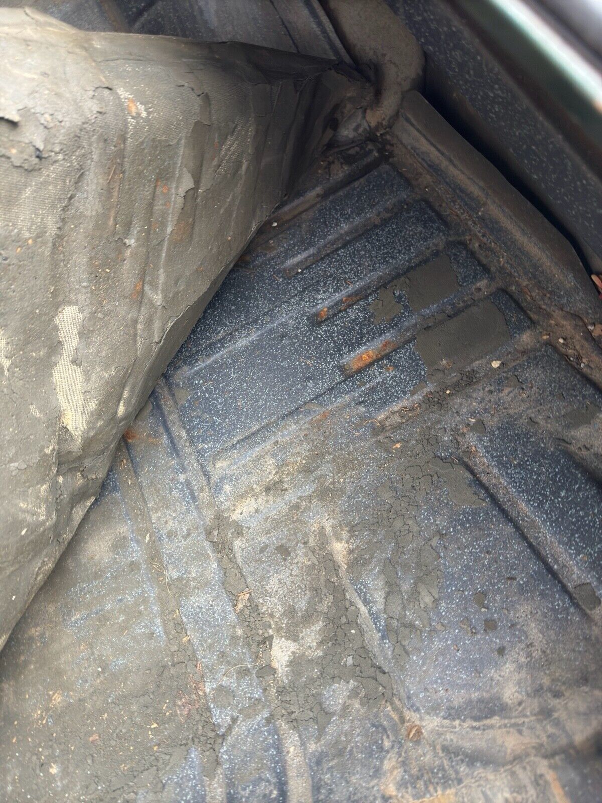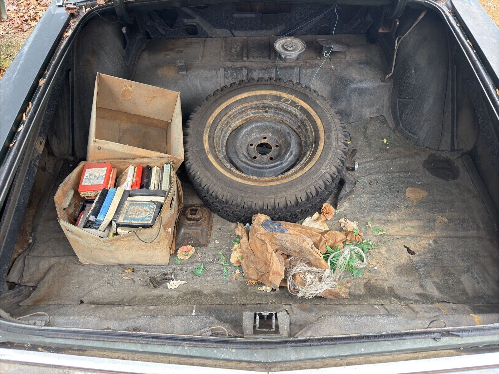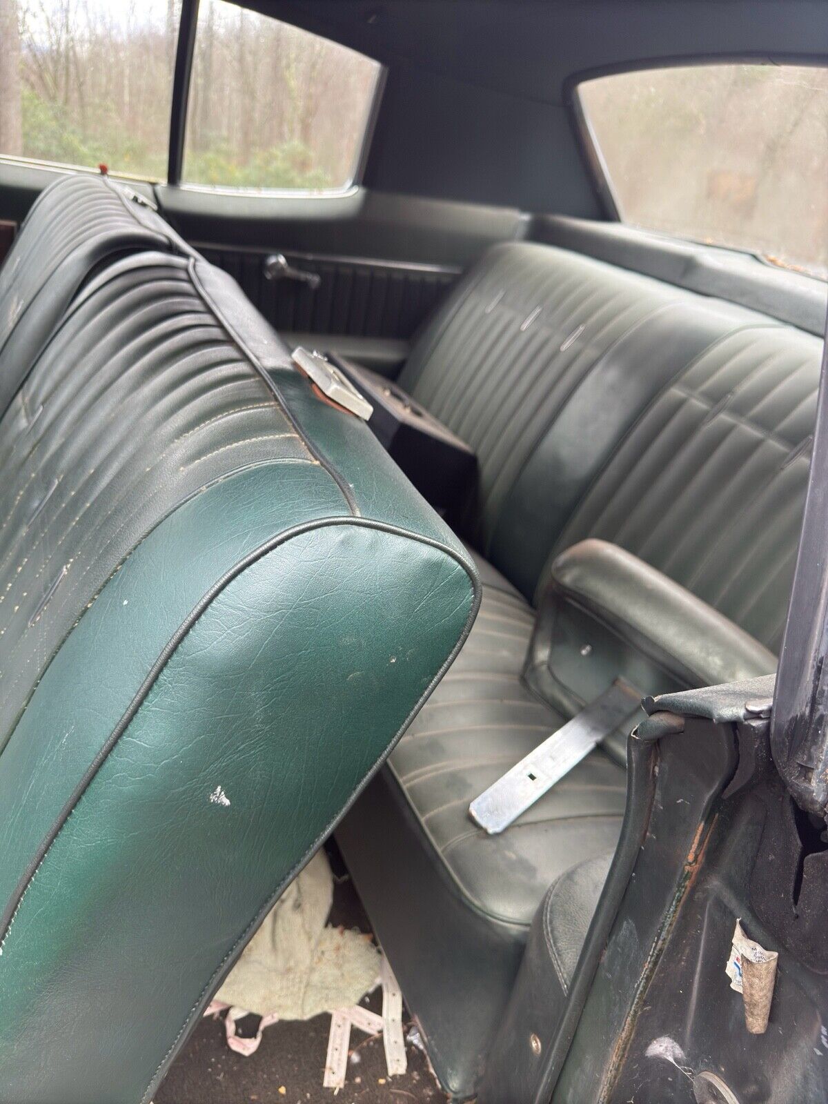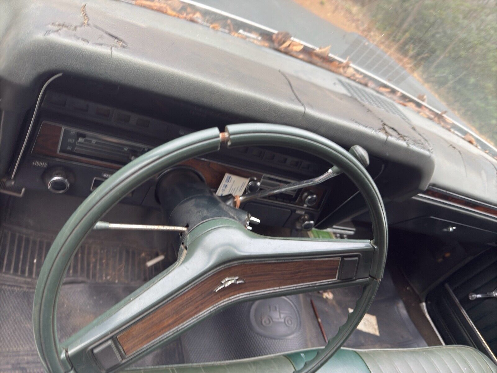 The interior looks better than expected for a car that's been sitting for nearly four decades. The dash is cracked, one headrest is missing, and the car lacks air conditioning (not installed from the factory).