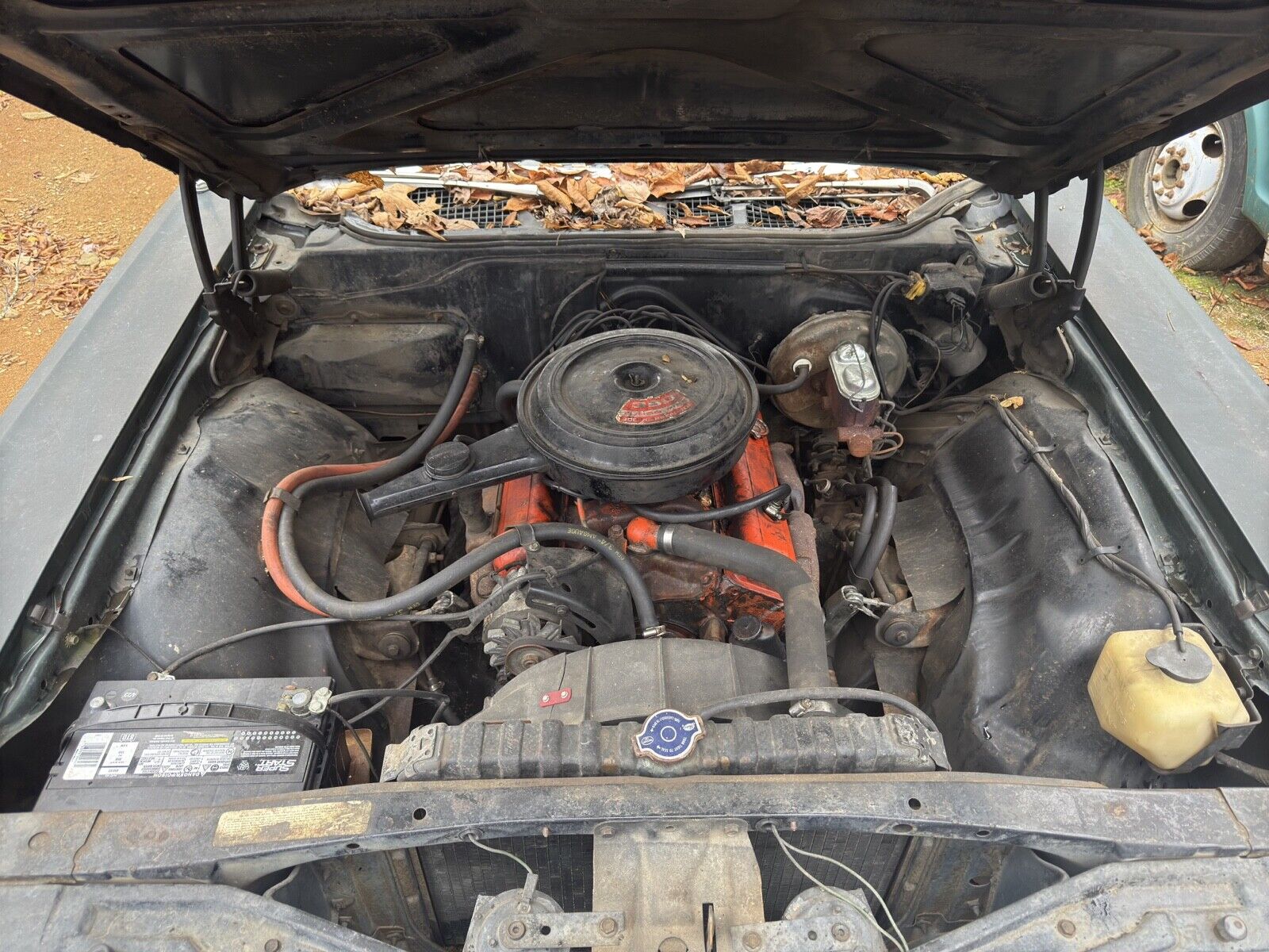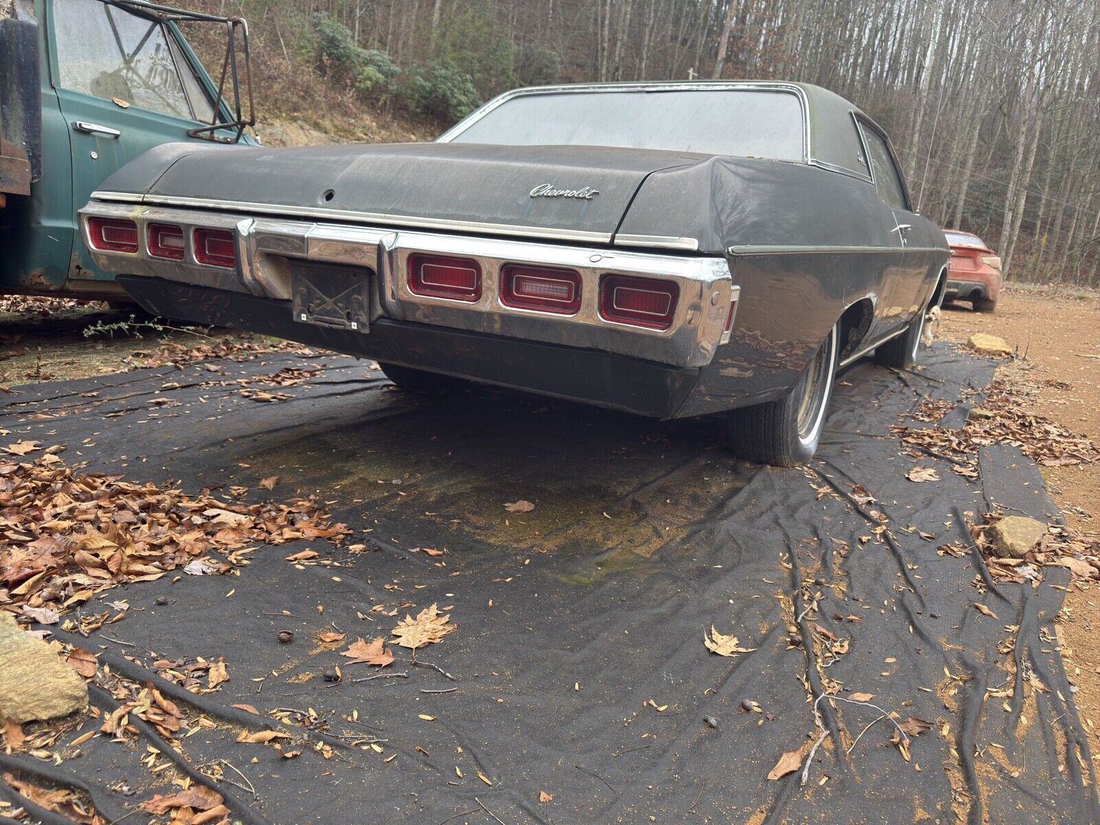 The owner parked this Impala with a full tank of gas, so the first thing everyone should do is clean the tank. However, the seller says they attempted to start the engine, and what do you know? It started right up, and the car even moves to get it on a trailer for shipping to another garage.
