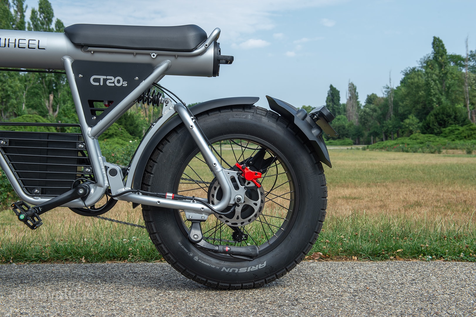 With the definitely dangerous top speed this e-bike is capable of, its braking capabilities should be on point, and fortunately, they are. The CT20S is equipped with double-piston hydraulic brakes with 180 mm brake discs.