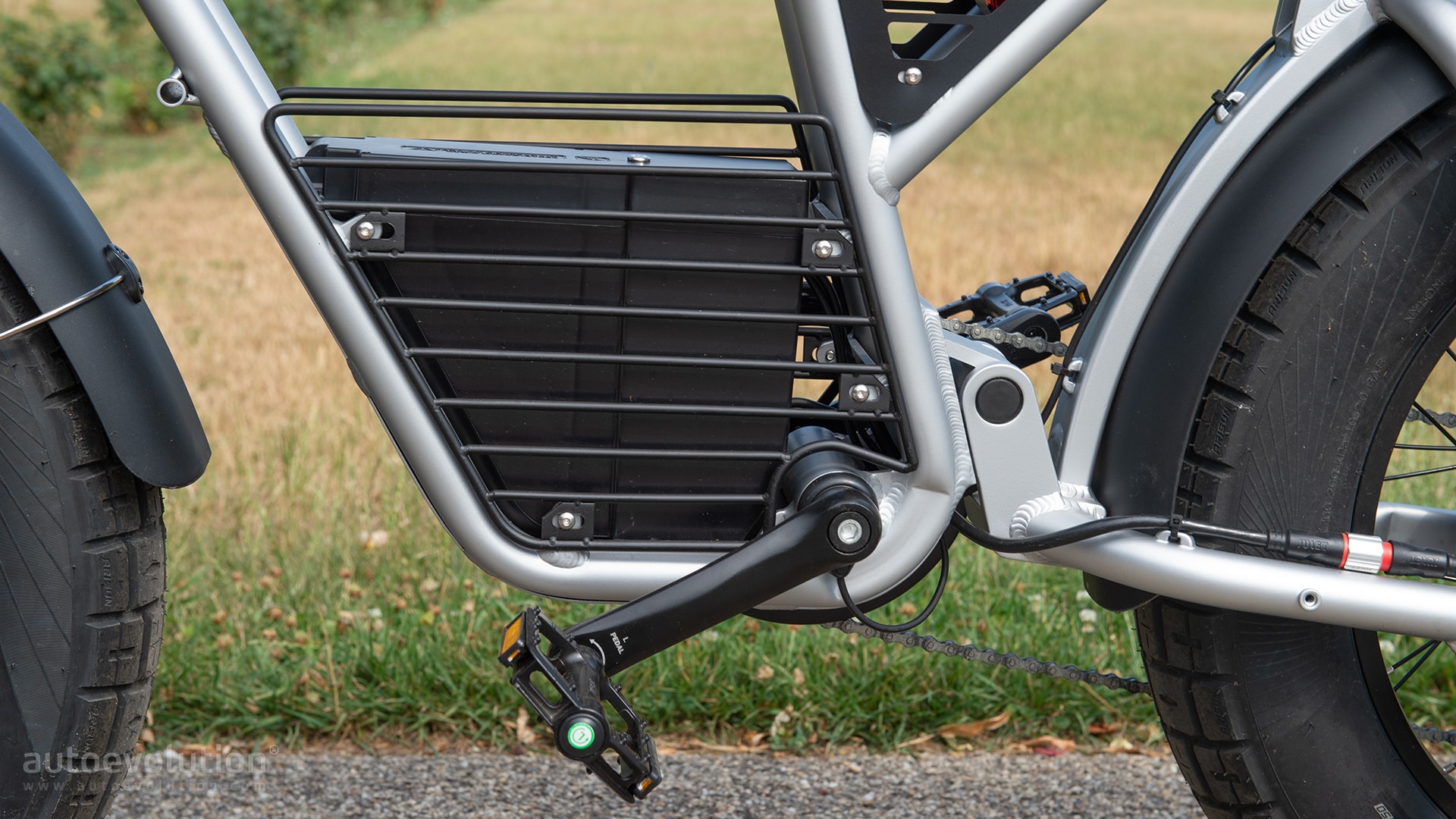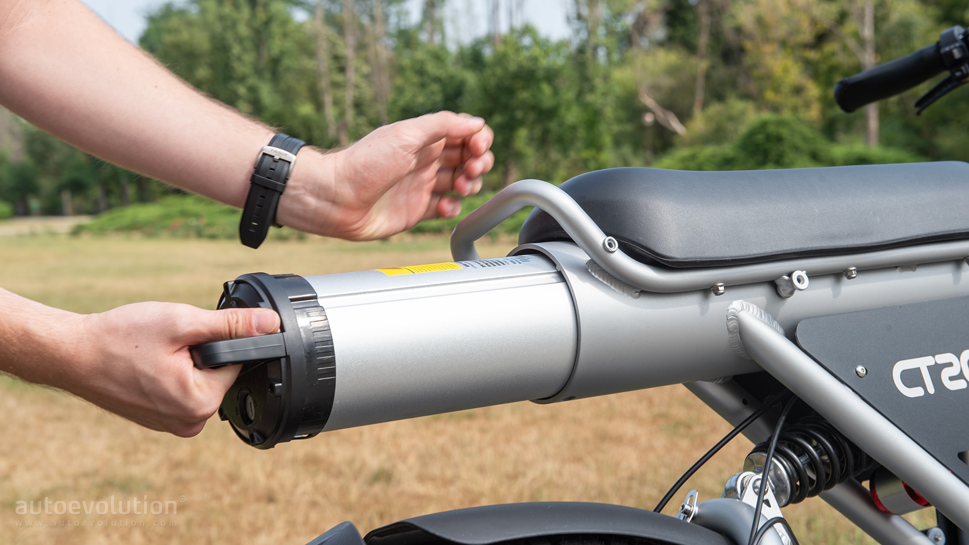 This remarkable performance is possible due to a massive 60 V, 27.5 Ah battery housed in the top tube. It’s secured there via a small locking mechanism at the battery’s rear. Removing and attaching it is also easy, as there’s a handle at the battery’s tail, and there are two tiny metal channels that let you know the right way of inserting the battery.