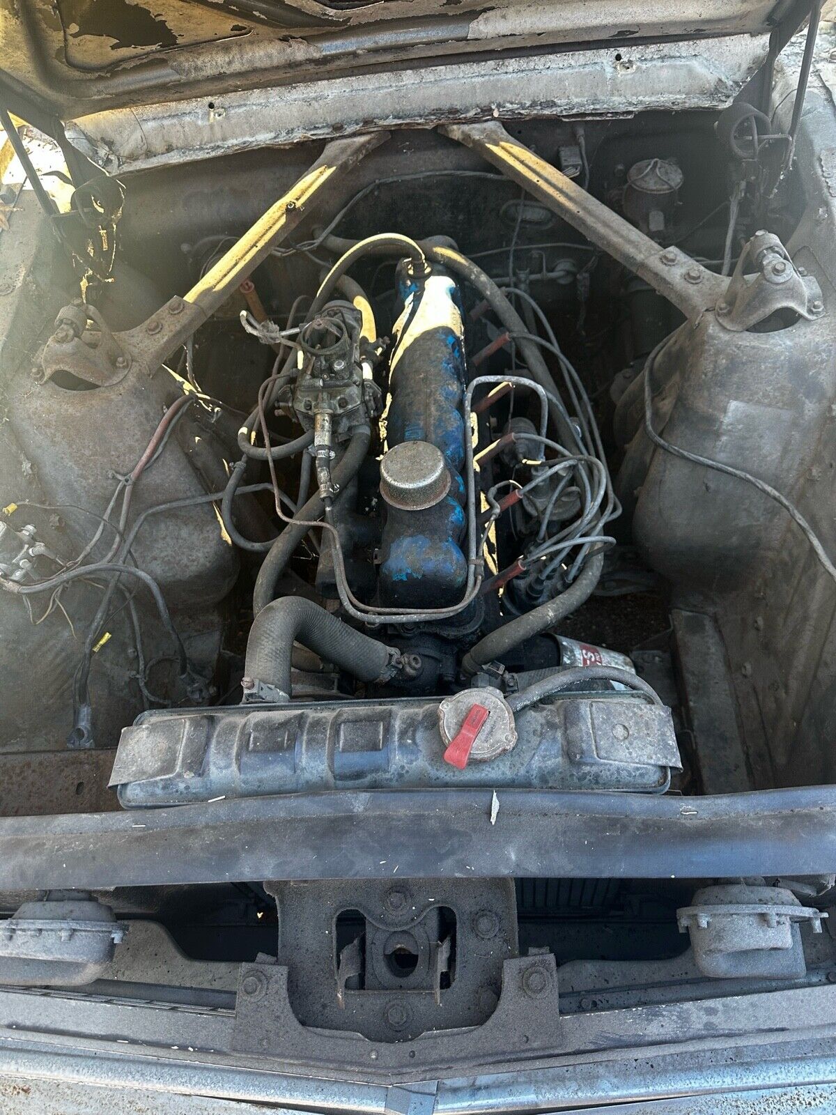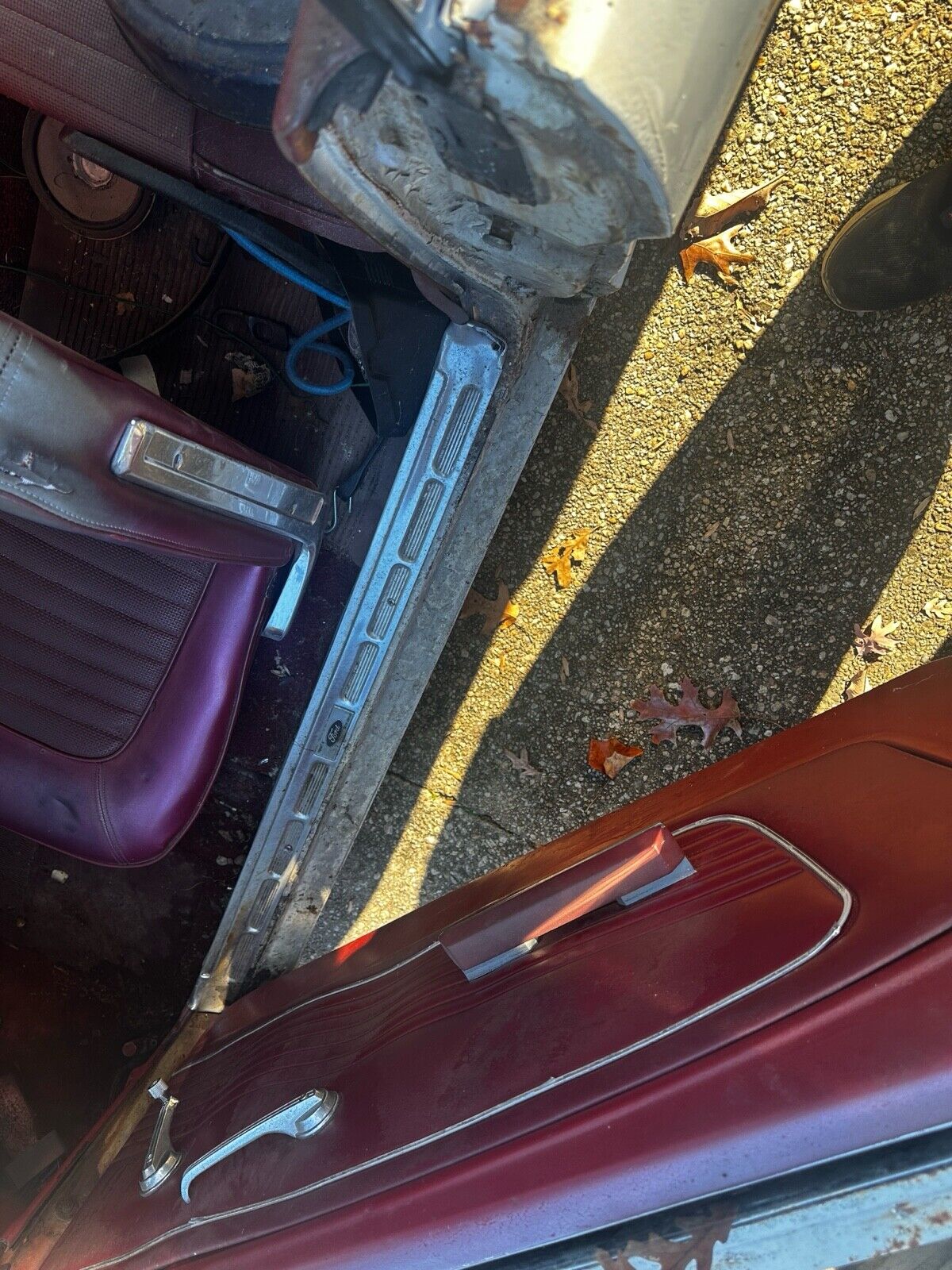 The car looks like it's been sitting for many years and is now parked in some sort of yard, waiting for someone to take it home. It hasn't been driven much lately, and you can tell the metal requires urgent attention. The body already exhibits concerning problems, and I don't expect the undersides to be cleaner. If possible, you should put the car on a lift to see what's under it, but the floors and the trunk pan might require typical patchwork or even full new pans.