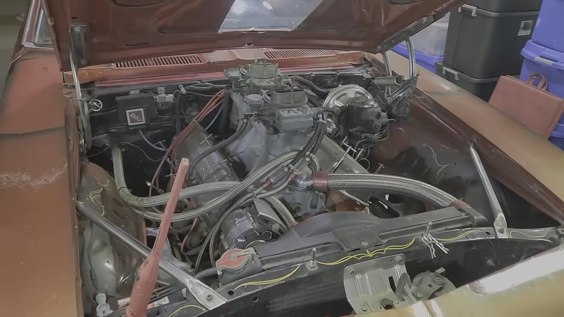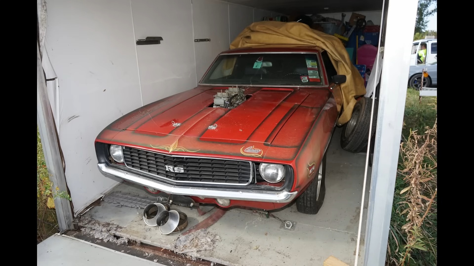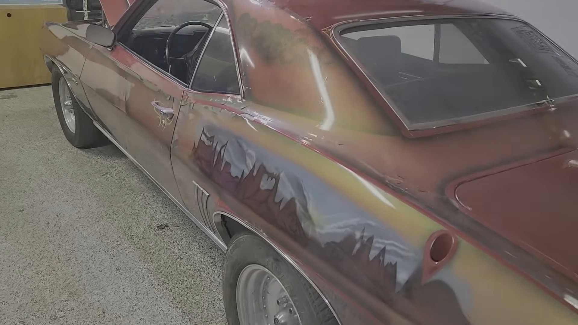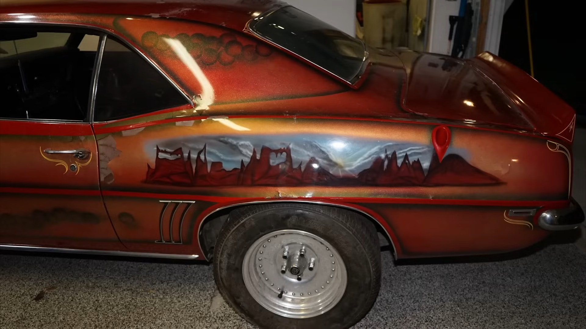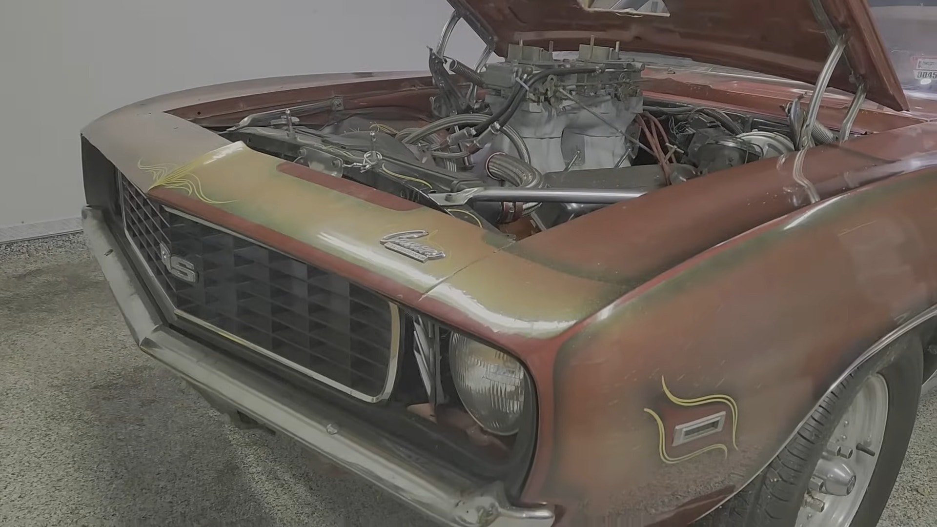 The man who bought it in 1981 is no longer with us. Still, his family recalled for the YouTuber that the super-rare Yenko Douglass Camaro got its outstanding livery after a rough encounter with the garage wall. Before 1981, the car boasted a red livery (its original hue was yellow, as seen in certain spots on it), and the car nuts guilty of wrinkling the livery had an idea: paint it themselves.