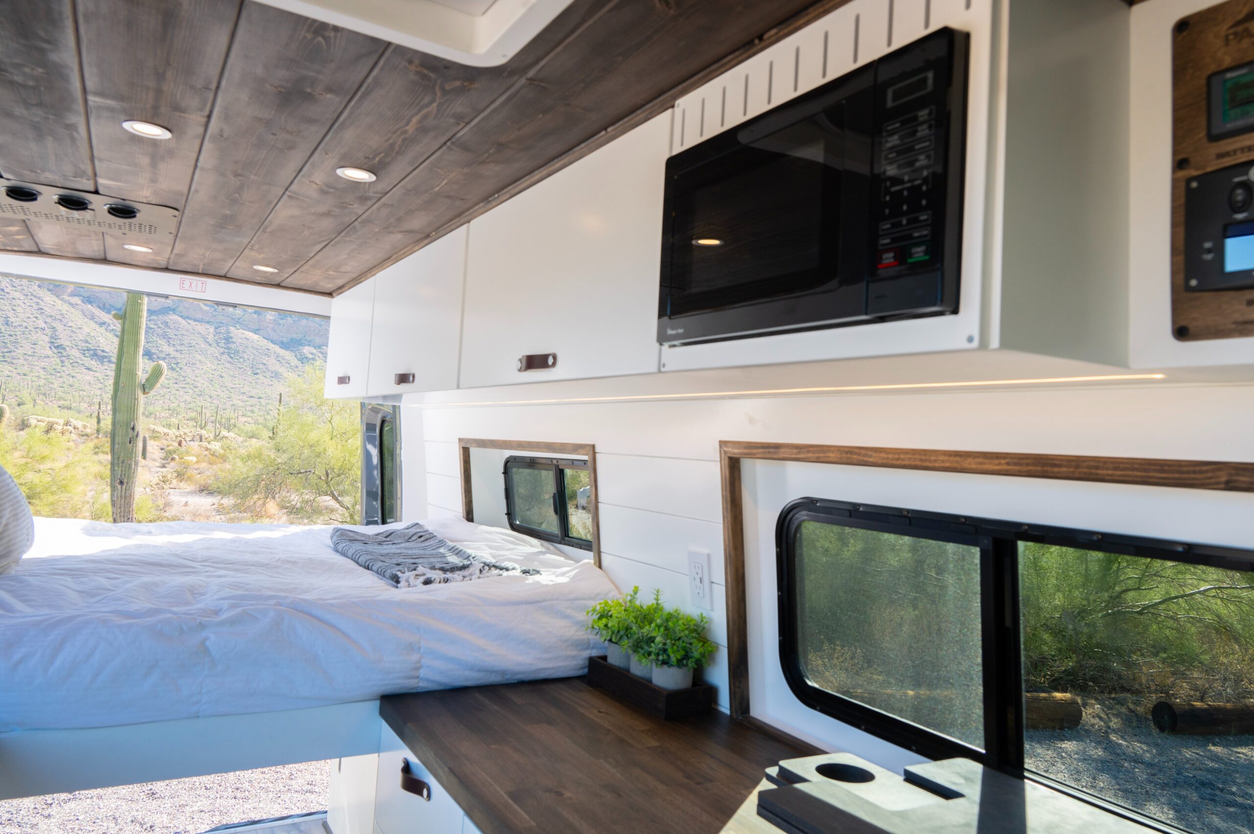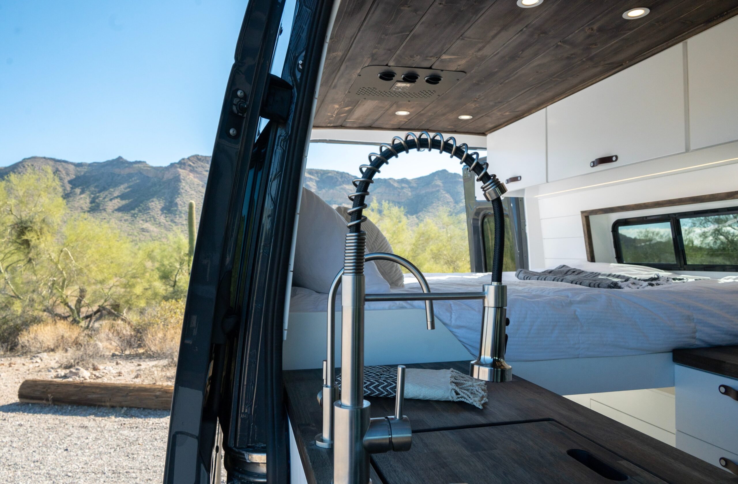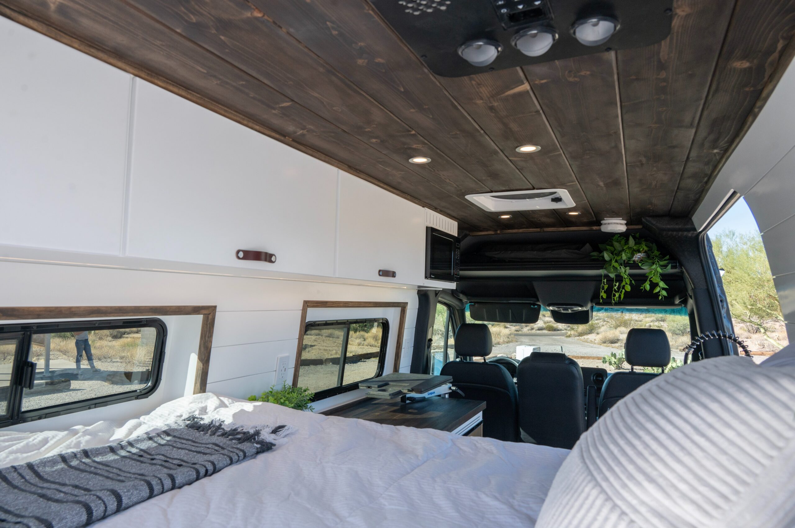 It was built by Papago Vans, a Mesa, Arizona-based van outfitter that specializes in creating custom adventure vans. With over 300 van builds under their belts, the team has extensive experience in building anything from a minimalist weekend getaway companion to fully-equipped rigs with off-road capabilities and luxurious interiors.