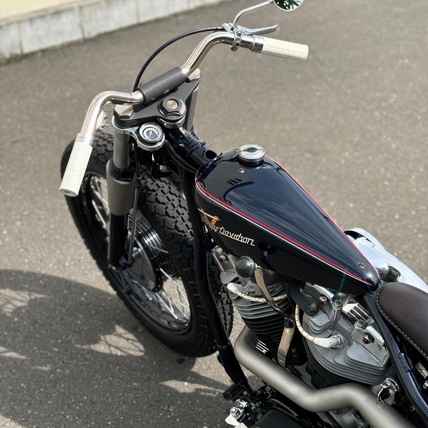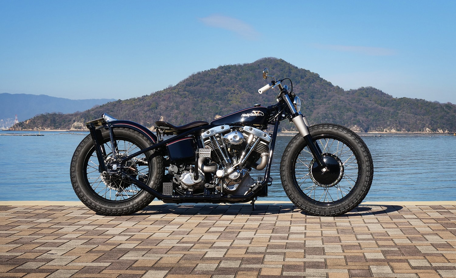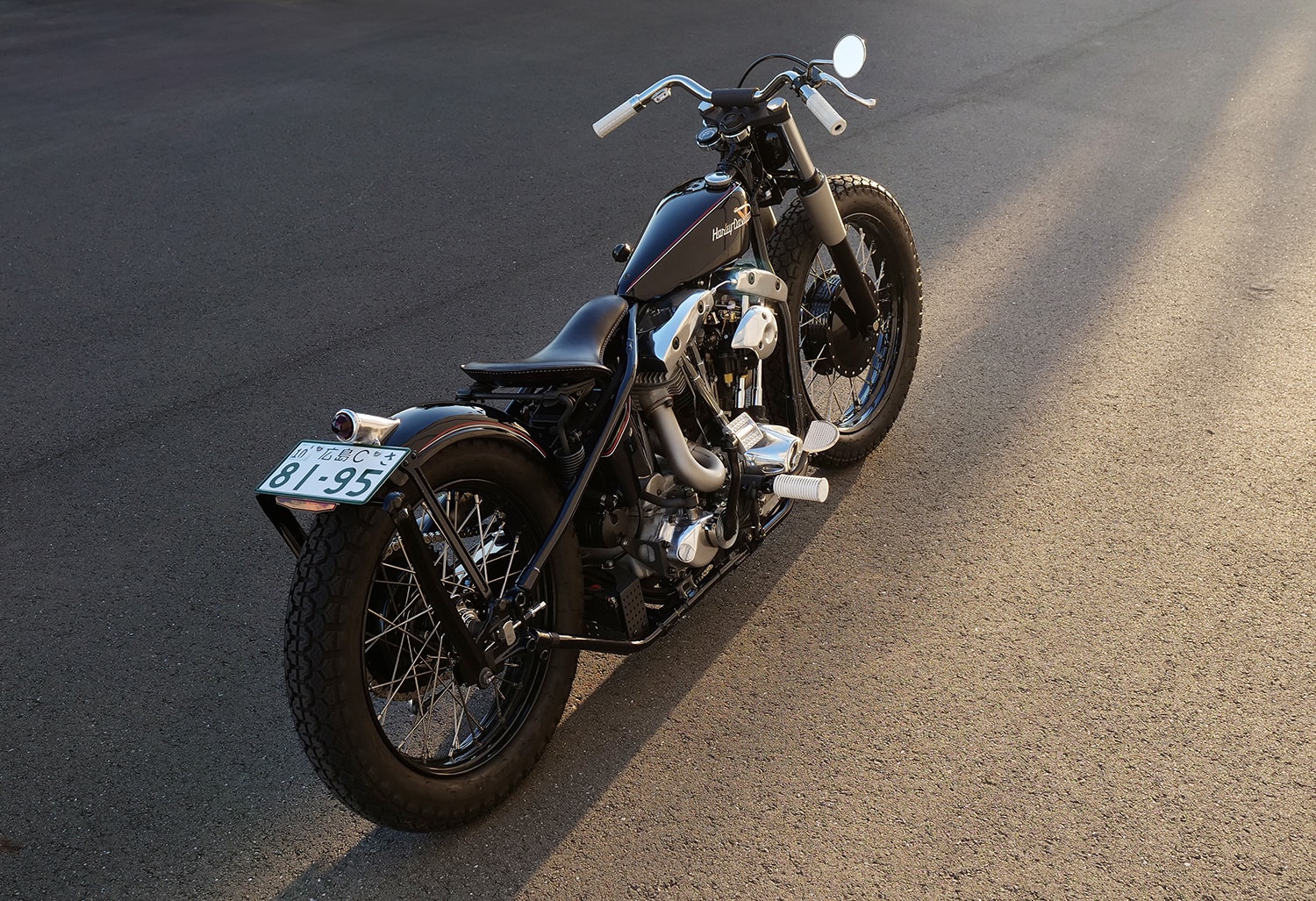 Inspired by a good friend, he decided to cross onto the realm of two wheels by founding Infinity, and this bold move seems to be paying off. He now deals with maintenance, restorations, and fully-fledged custom projects, focusing primarily on Harley-Davidson models new and old. Of course, Masumi’s one-off builds are what we’re here to talk about today, more specifically a Shovelhead-powered bobber dripping with classic charm.