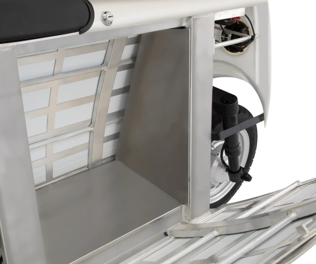 The 1.5 cu-ft (45.2 liters) compartment hidden between the two sides can fit up to 33 lbs (15 kg) of cargo, or the equivalent of three shopping bags. In other words, you could replace your daily driver with this e-scooter for weekly grocery runs – if you make sure you stick to your shopping list for once.