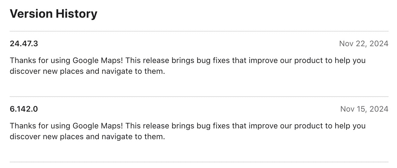 It might sound complicated, but if you look at the iPhone App Store, you'll see that the latest Google Maps update jumped from version 6.142.0 (dated November 15) to version 24.47.3. This latter update was released on November 22, and the same version should also be available for Android users through the Google Play Store.